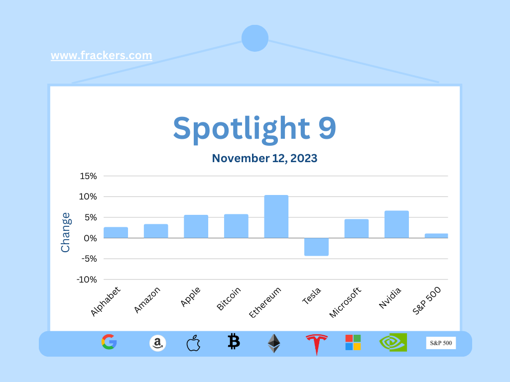 Volgens mij is dit een unicum in de 31 weken dat ik deze nieuwsbrief maak: de hele Spotlight 9 staat in de plus. Oorlogen, bombardementen, wereldwijde spanningen, het dondert beleggers blijkbaar niet als de rente maar hoog blijft.