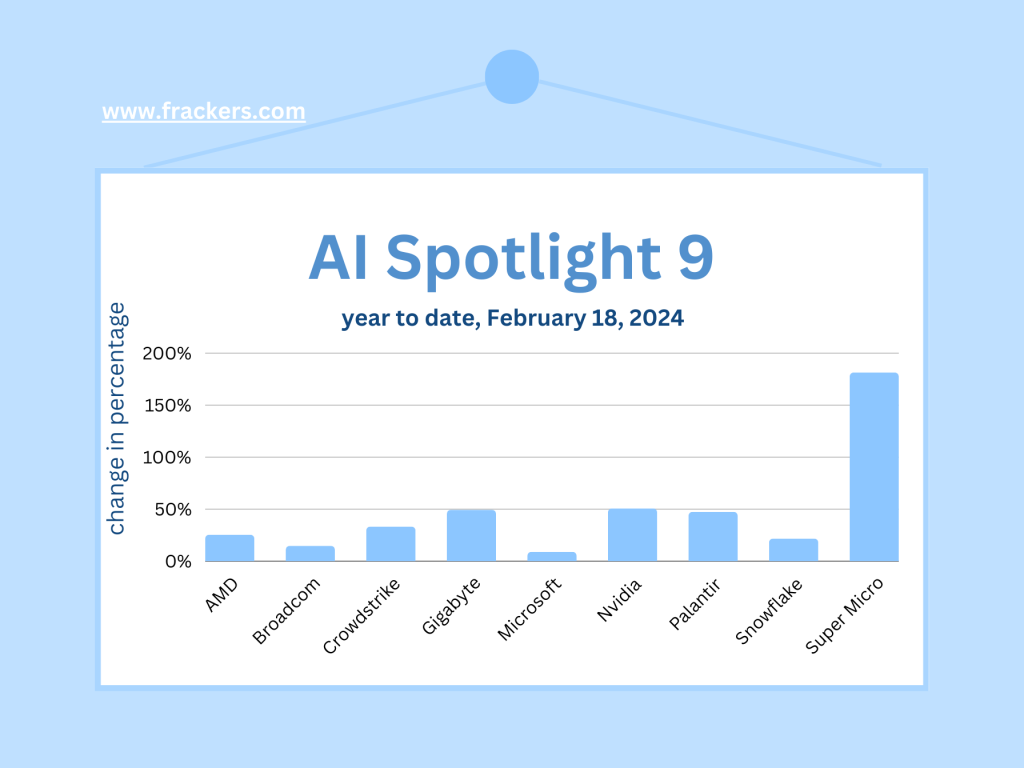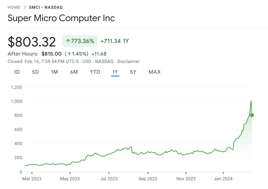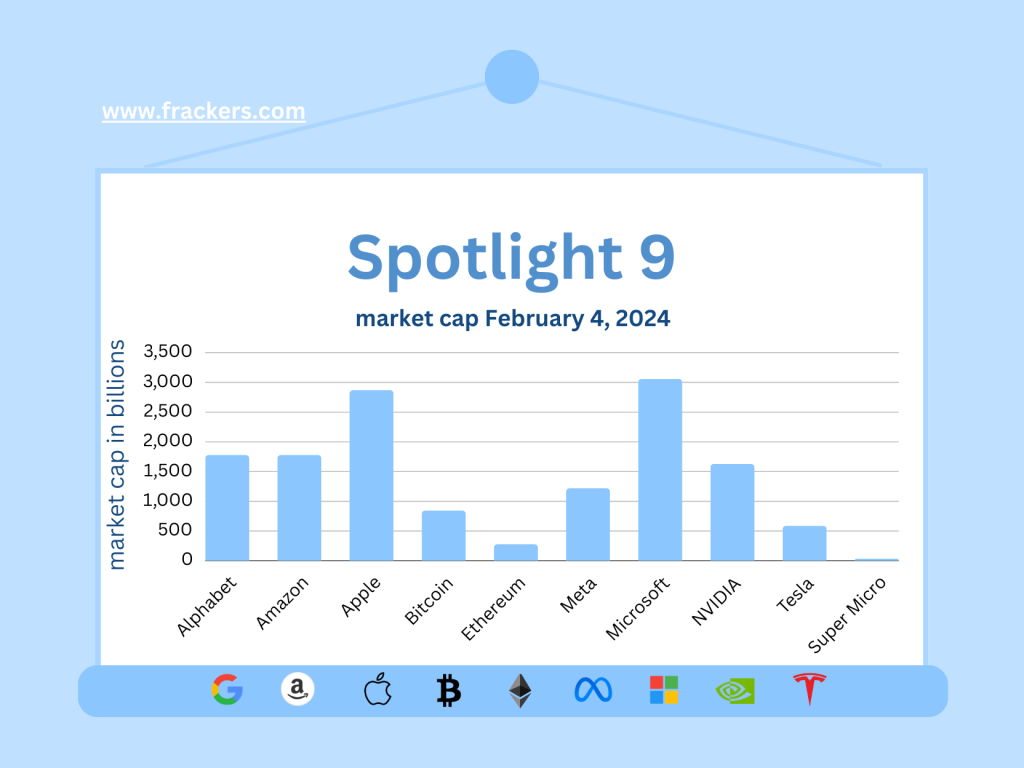 Het bedrijf steeg in een dag met liefst $277 miljard aan beurswaarde, een absoluut record. Ik heb nog meer te melden over Nvidia en het sterk opkomende Super Micro maar wil deze nieuwsbrief niet te lang maken. Wie wil weten hoe het kan dat Nvidia na Microsoft, Apple en de Saudische oliemaatschappij Aramco het meest waardevolle bedrijf ter wereld werd en de aandelenbeurzen deze week op drie continenten naar recordhoogtes stuwde, heb ik deze aparte blogpost geschreven.