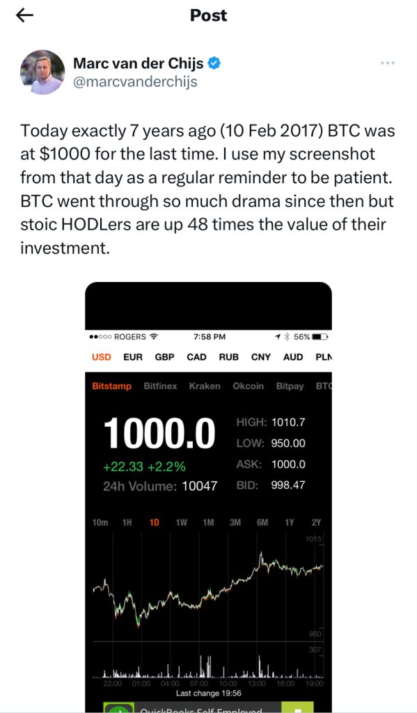 Ver weg van alle aandacht voor AI en superchips kruipt Bitcoin bijna stiekem naar de $50.000. En dan te bedenken dat Bitcoin slechts zeven jaar geleden, op 10 februari 2017, voor het eerst de grens van duizend dollar slechtte.