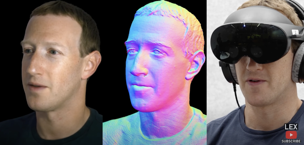 Drie versies van Mark Zuckerberg en alle drie zijn emotieloos. Griezelig realistisch. Bron: Lex Fridman podcast.