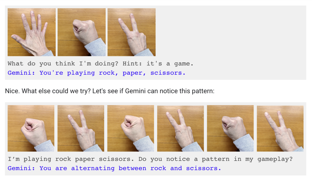 Kijk vooral naar dit stukje uit de gewraakte introductievideo van Gemini, waarin Gemini beter lijkt te zijn in balletje-balletje dan een willekeurige toerist op de Nieuwendijk: feilloos ziet Gemini welk bekertje moet worden opgetild. Even later lijkt Gemini nog intelligenter, omdat het gelijk ‘steen, papier, schaar’ herkent als iemand die handgebaren maakt. Helaas blijkt dit totale onzin.